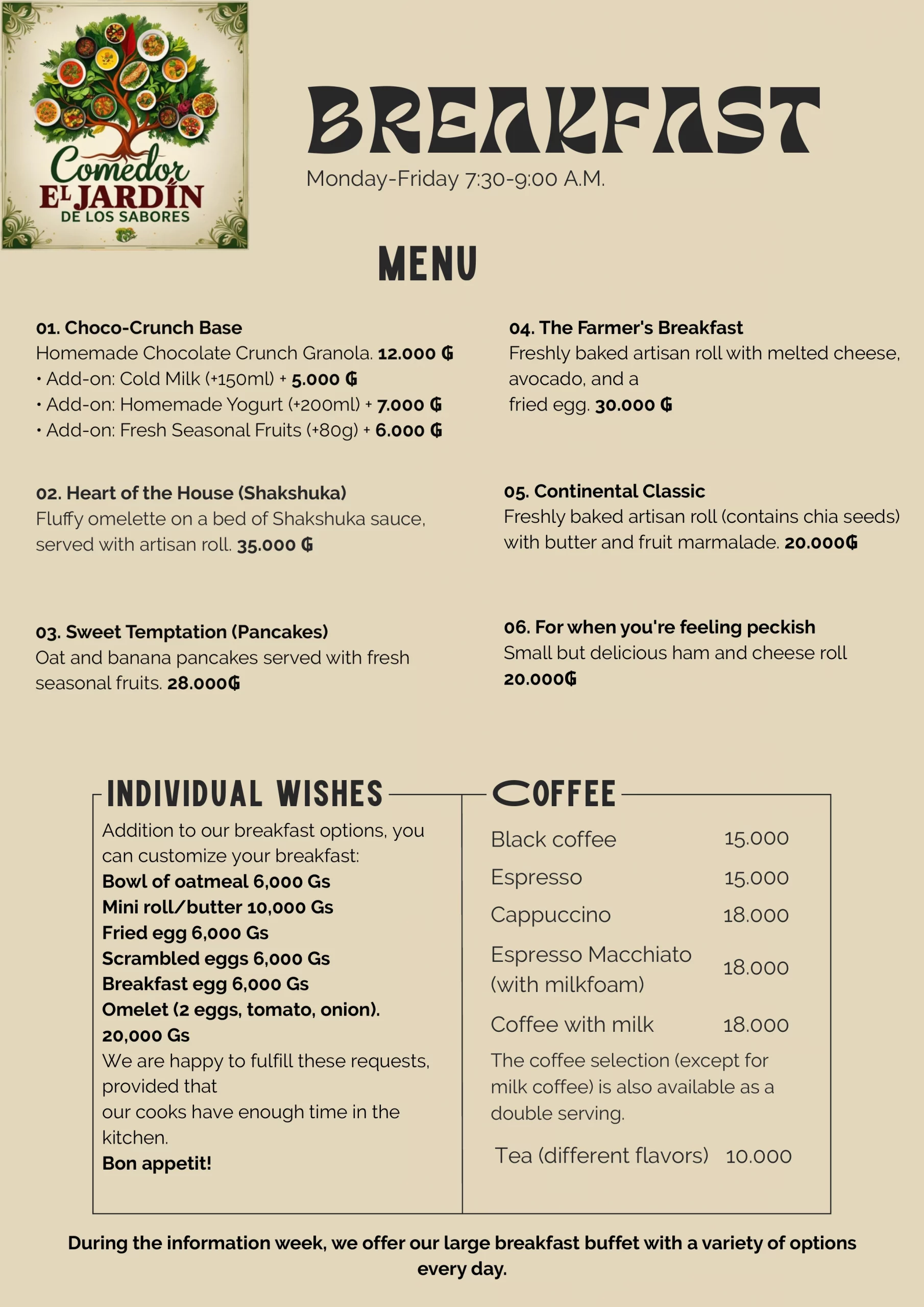 Den Zugang zu unserer Telegram-Gruppe, in der jeden Tag im Voraus unser reichhaltiges Speisenangebot veröffentlicht wird, erfragt ihr einfach vor Ort im Comedor „Jardin de los Sabores“.