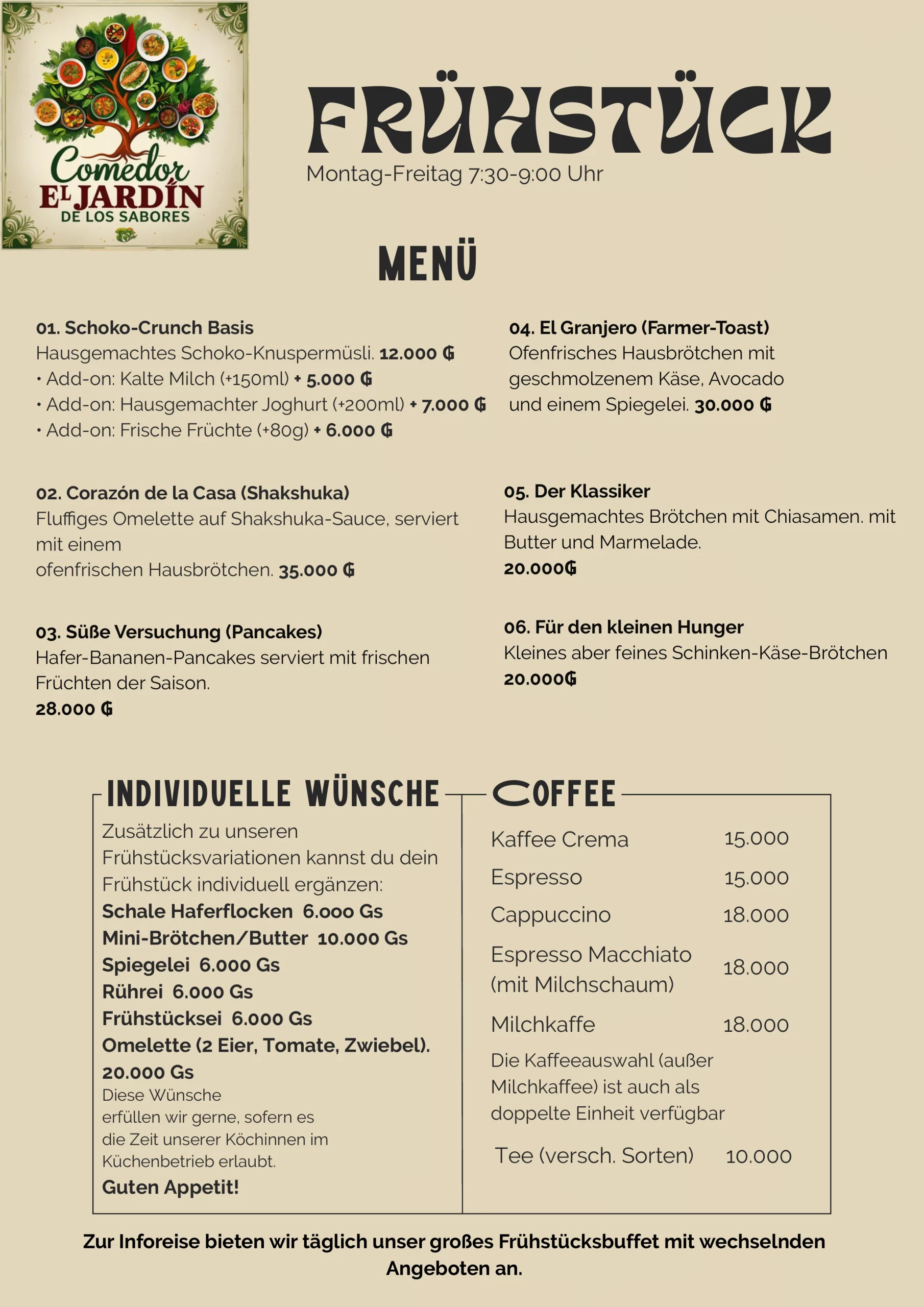 Bei uns gibt es eine eigene Frühstückskarte, aus der du á la carte bestellen kannst. So startest du ganz nach deinem Geschmack in den Tag – frisch, liebevoll und abwechslungsreich.